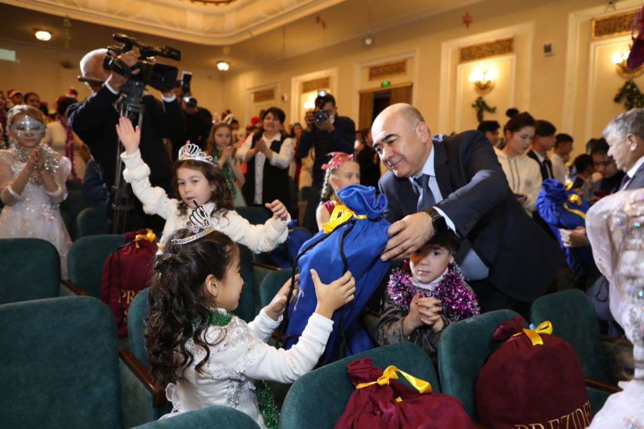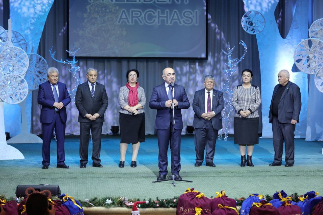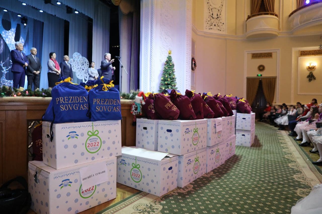 Tantanali bayram munosabati bilan joʻnatilgan Prezident sovgʻalarini viloyat hokimi vazifasini bajaruvchi Zoyir Mirzayev hudud faollari bilan birga bolalarga tarqatdi. Shundan soʻng oʻgʻil-qizlar uchun “Afsonaviy oʻrmonning Yangi yil kvesti” nomli musiqali sahna koʻrinishlari namoyish etildi. Toʻkin dasturxon yozildi.