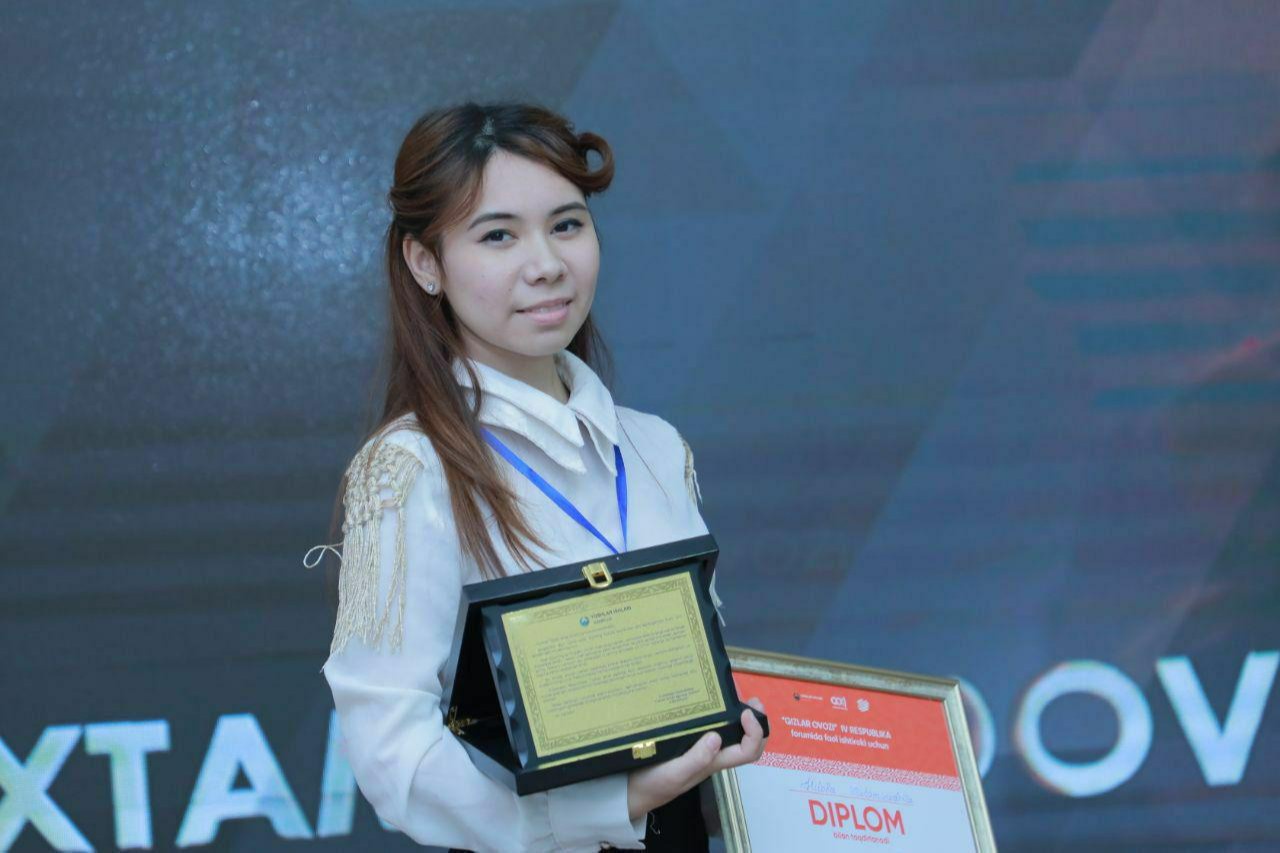 Toshkent to'qimachilik va yengil sanoat instituti talabasi bo'lgan yosh murabbiy bugungi kunda London shahridagi Yevroosiyo san'at uyushmasi a'zosi, 10 dan ortiq xalqaro san'at tanlovlari laureati, 15 dan ortiq ilmiy va publitsistik maqolalar muallifi, Yoshlar ishlari agentligi Markaziy Kengashi faoli, “Qizlar ovozi” klubi koordinatori, 20 dan ortiq xalqaro ijtimoiy fuqarolik forumlarining ishtirokchisi sanaladi. U mustaqil ravishda hunar, til o'rgandi. Rus, ingliz tillarida ravon so'zlasha oladi. O'zga tillarda yozgan esse, maqolalari bilan xalqaro tanlovlar, grantlar g'olibi bo'lib kelmoqda.