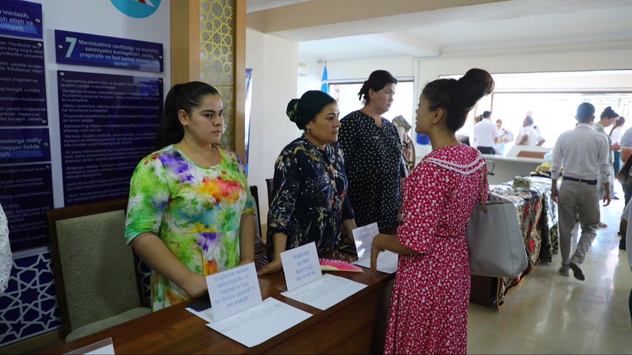 Hayotda toʻgʻri kasb tanlash muvaffaqiyatli kelajakning garovidir. Chunki insonning aksariyat vaqti ish jarayonlarida oʻtadi. Shu sababdan ham kishi oʻzi uchun sevimli hunarni oʻrganishi, oʻzi yoqqan kasb bilan shugʻullanishi kerak. Xodimlarni qoʻllab-quvvatlash, ularni mehnat bilan band boʻlmagan oila aʼzolarini ish bilan taʼminlash yoki tadbirkorlikka yoʻnaltirish va hunar egallashlariga koʻmaklashish maqsadida tadbirning asosiy qismi, mehnat yarmarkasi oʻtkazildi. Yarmarkada tumandagi barcha korxona va tashkilotlar oʻzlarining boʻsh ish oʻrinlari bilan ishtirok etishdi. Shu bilan birga, oʻz tadbirkorligini yoʻlga qoʻymoqchi boʻlgan xotin-qizlar uchun hunarmandchilik va zamonaviy texnikalar koʻrgazmalari ham tashkil etildi.