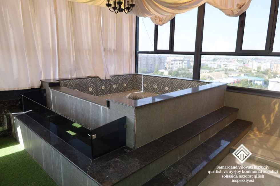 Aholi murojaatiga asosan oʻtkazilgan reyd tadbirlari davomida Samarqand shahri “Sugʻdiyona” mahallasidagi 67-A sonli koʻp qavatli uyning 10-qavat pentxaus qismida oʻzboshimchalik bilan “basseyn” qurilgani aniqlandi.