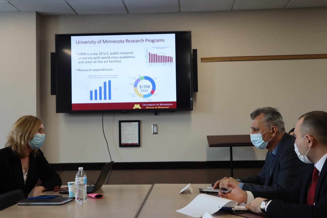 Amerikada veterinariya mutaxassislariga talab juda katta, deyishdi. Twinning dasturi safar rejasiga koʻra, Minnesota universitetining dastur boʻyicha masʼul xodimi “Hayvonlar kasalliklari va oziq-ovqat xavfsizligi markazi” direktori oʻrinbosari, doktor Maria Sol Perez boshchiligida oliy oʻquv yurtining bosh binosidagi majlislar zalida boʻldik. U yerda kollejning magistratura va doktorantura boʻyicha dekani, professor Sandra Godden bilan magistratura va doktoranturada oʻqishning tashkil qilinishi, ilmiy sohaga ajratiladigan mablagʻlar, magistratura hamda doktoranturaga qabul boʻyicha talablar hamda boshqa masalalarga bagʻishlangan taqdimoti bilan tanishdik. Shuningdek, safar davomida universitetning xalqaro aloqalar boʻyicha prorektor yordamchisi, xalqaro dasturlar fakulteti dekani, professor M.Makkuayd, Veterinariya meditsinasi kolleji dekani, professor L.Molgard, “Xayvonlar salomatligi va oziq-ovqat xavfsizligi” markazi boshligʻi, professor A.Perez, “Global salomatlik va ijtimoiy javobgarlik” markazi direktori, doktor Sh.Prasadlar bilan uchrashdik. Ular bilan oʻzaro hamkorlikni yoʻlga qoʻyish, taʼlim, ilmiy va metodik sohada aloqalarni rivojlantirish, xalqaro va milliy grantlar tanlovlarida birgalikda ishtirok etish, shuningdek mamlakatimizda veterinariya meditsinasi taʼlimi, veterinariya xizmati hamda oziq-ovqat xavfsizligi tizimlarini takomillashtirish boʻyicha muzokaralar olib borildi.