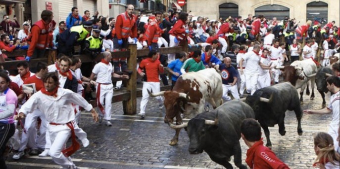 Buqalar bilan poyga Navarra homiysi Avliyo Fermin sharafiga o'tkaziladigan festivalning asosiy tadbiridir. Unda buqalar qo'radan qo'yib yuboriladi hamda tor ko'cha bo'ylab bir necha daqiqa davomida yuzlab odamlar ortidan quvadi.