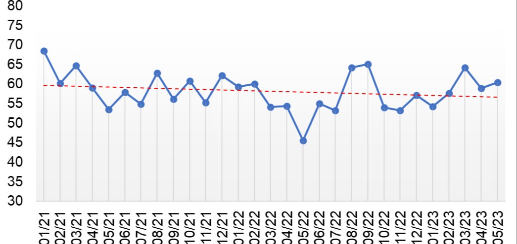 Jumladan, may oyidagi soʻrovlar shuni koʻrsatdiki, ishbilarmonlik muhitining jamlangan indeksi bir oy oldingi pasayishdan keyin oʻsgan, yaʼni avvalgi oyga nisbatan 1 punktga oshib, 60 punktni tashkil etdi. Biznes holatining oʻzgarishi koʻproq qurilish va sanoat sektoridagi ijobiy oʻzgarishlarga bogʻliq boʻldi.