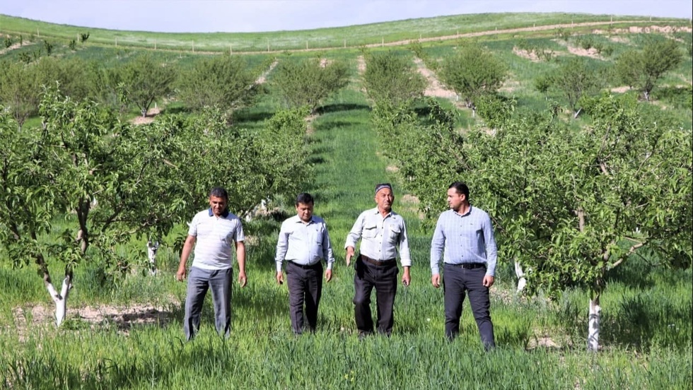 “Bu ishni boshlashdan oldin sinov tariqasida 4 gektar yerga suvsizlikka bardoshli koʻchatlar yetishtirdik. Koʻzlagan natijaga erishganimizdan soʻng faoliyatimizni kengaytirdik. Hozirda bogʻ qator oralariga zigʻir, kunjut va bugʻdoy ham ekkanmiz”, — deydi fermer xoʻjaligi rahbari Toshmirzo Yorov.