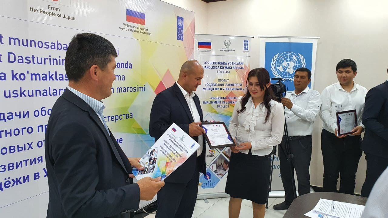 O'zbekistonda yoshlar bandligiga ko'maklashish — BMTTD va Bandlik va mehnat munosabatlari vazirligining qo'shma loyihasi bo'lib, Rossiya Federatsiyasi hukumati va Yaponiya hukumatining moliyaviy ko'magida amalga oshirilmoqda. Loyiha doirasida Andijon, Namangan, Jizzax, Navoiy, Qashqadaryo va Surxondaryo viloyatlaridagi 34 nafar tadbirkorlarga umumiy qiymati 1 176 940 669 so'mlik jami 323 dona zamonaviy tikuv va IT asbob-uskuna, mebel va jihozlar topshirildi.