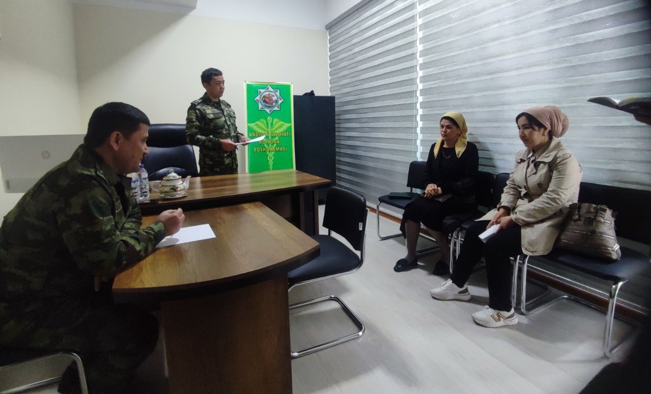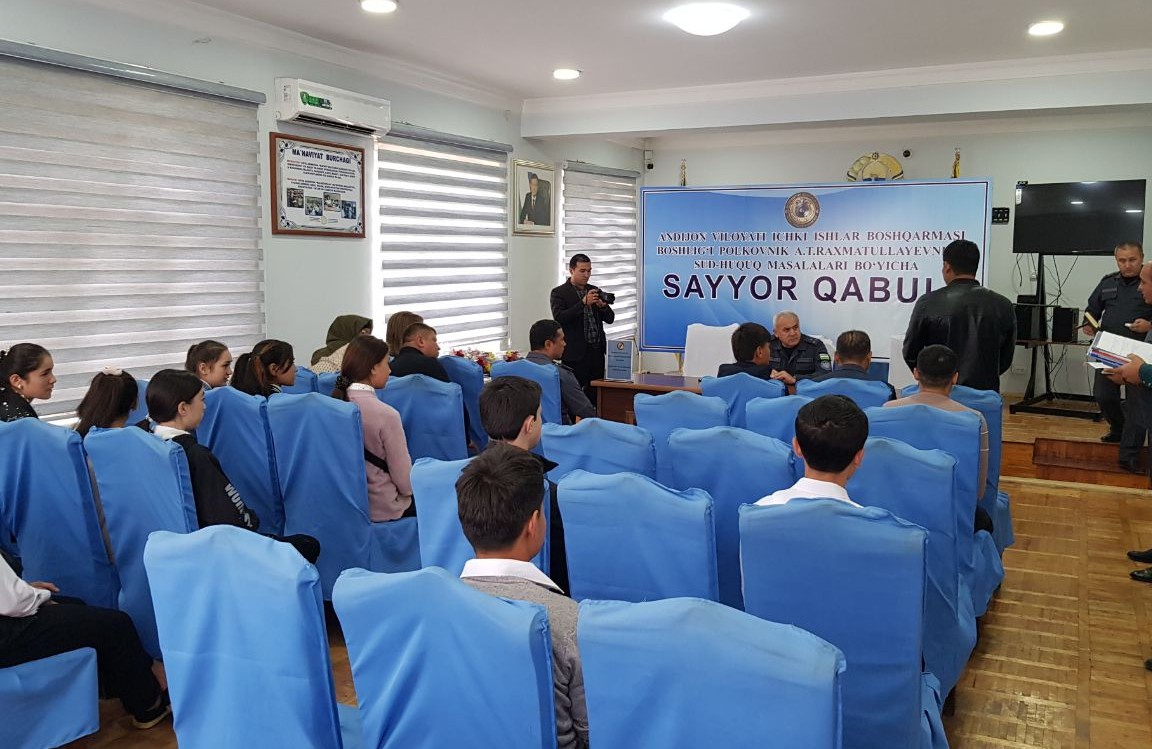 Ichki ishlar boshqarmasi vakillari tomonidan qabul jarayonida 117 ta murojaat koʻrib chiqildi. Jumladan, 26 ta surishtiruv va tergov masalalarida, 36 ta Oʻzbekiston Respublikasi Fuqarolik pasporti va xorijga chiqish hujjatlarini rasmiylashtirish, 5 ta mol-mulk, 34 ta jazoni ijro etish bilan bogʻliq murojaatlardir. Ularning 88 tasi joyida joyida ijobiy hal etildi, 29 tasi koʻrib chiqish uchun nazoratga olindi.