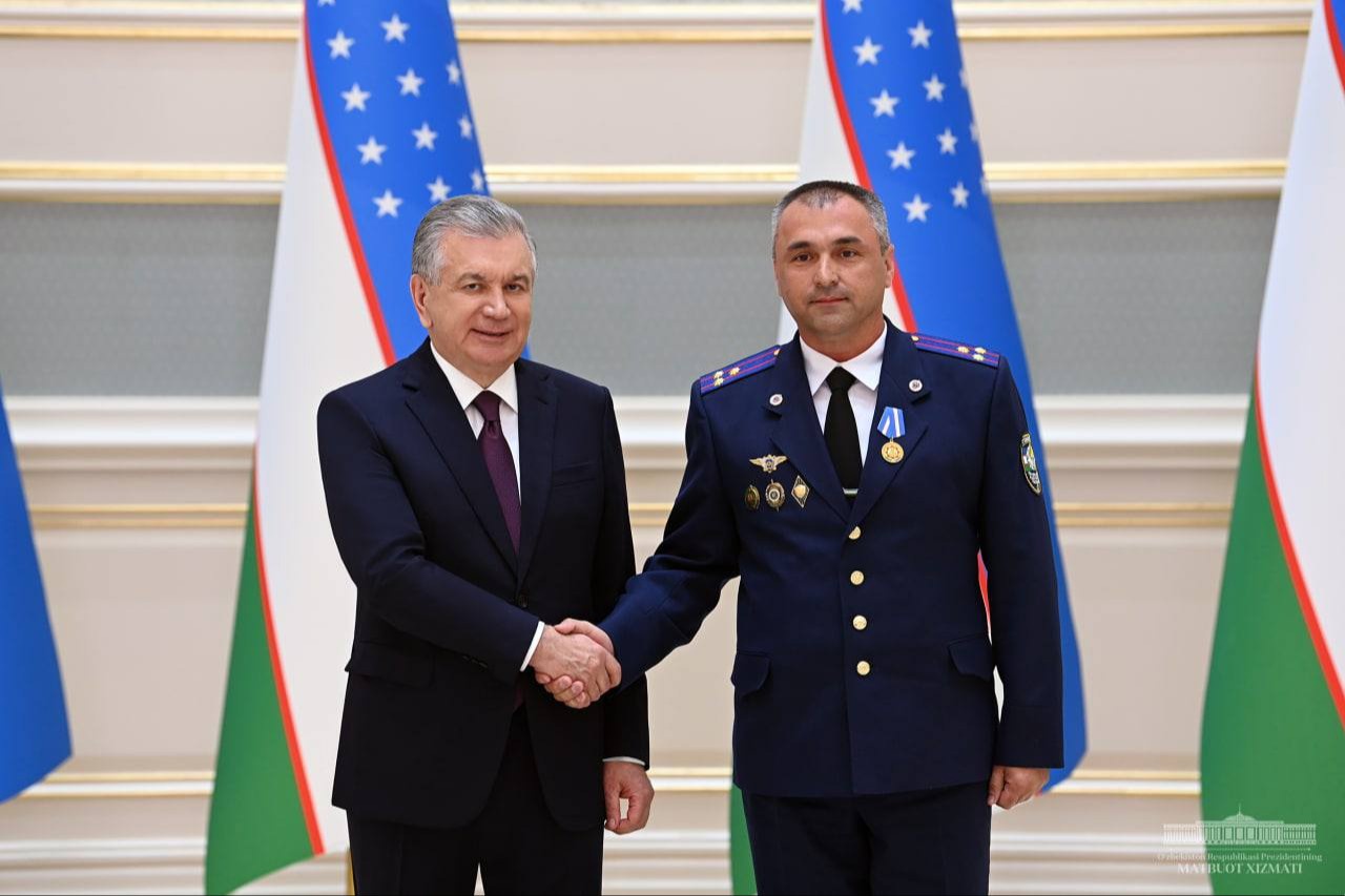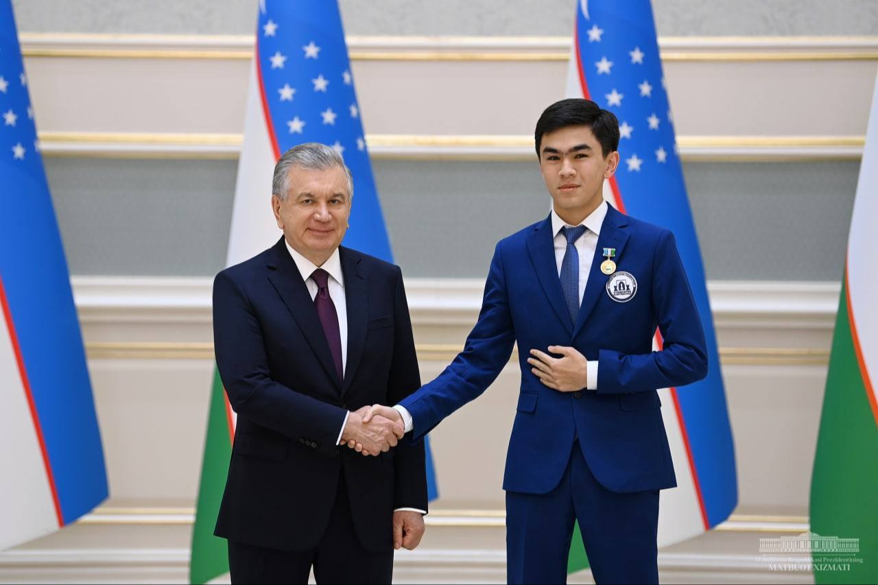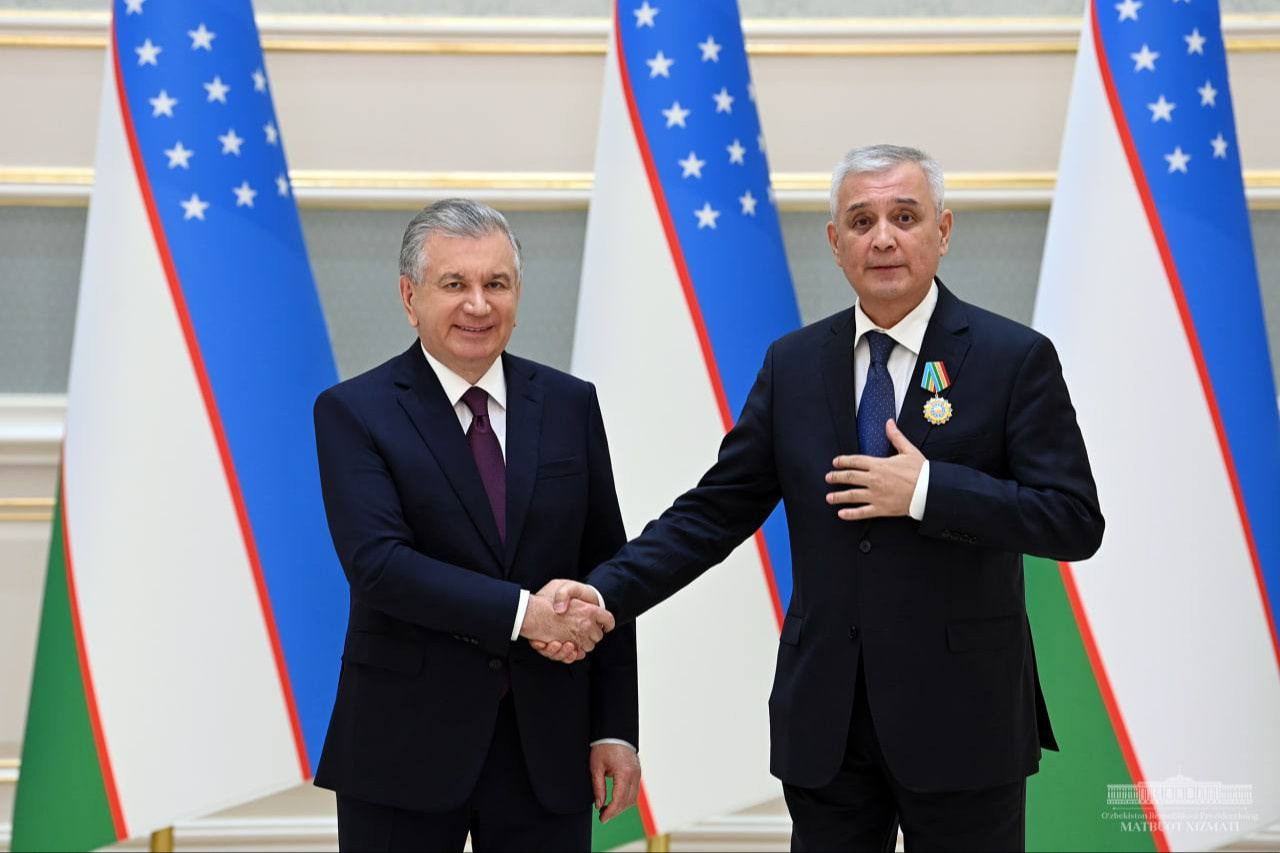 Shundan so‘ng, davlatimiz rahbari mukofotlarni tantanali ravishda topshirdi.