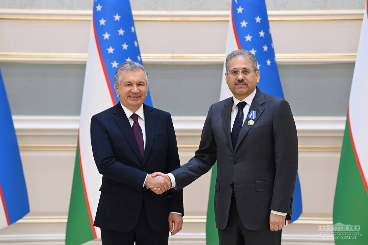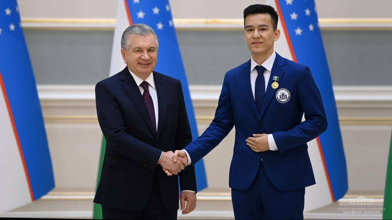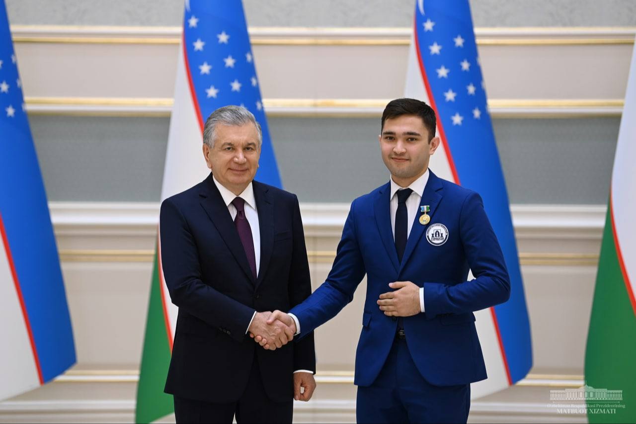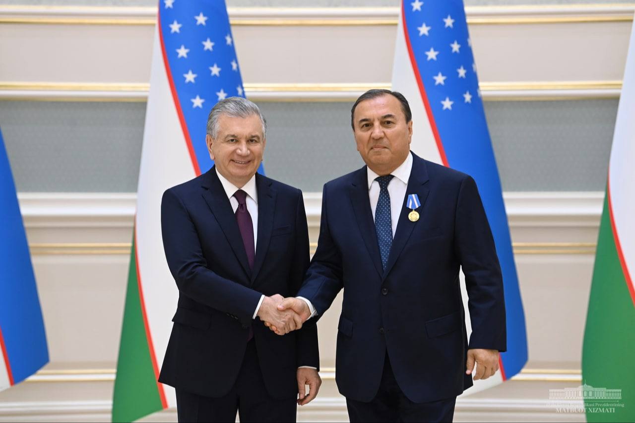 Shundan so‘ng, davlatimiz rahbari mukofotlarni tantanali ravishda topshirdi.