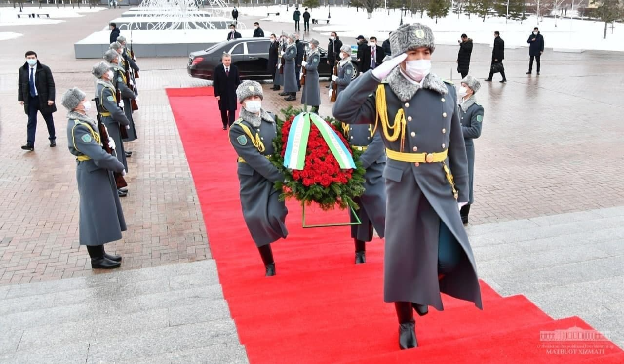 Xorijiy davlatlar rahbarlari bu yodgorlikka gul qoʻyib, Qozogʻiston xalqiga hurmat-ehtiromini bildiradilar.