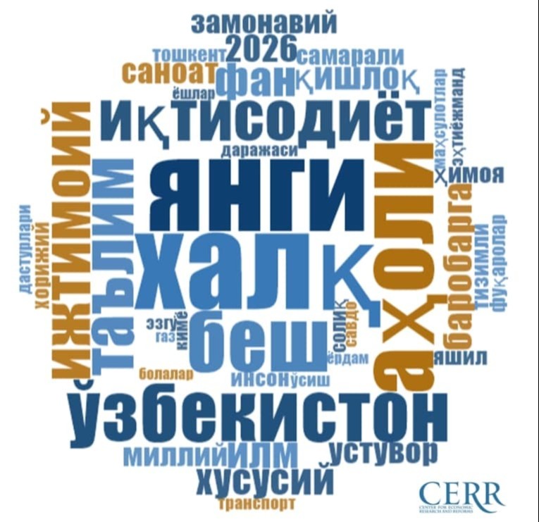 Prezidenti tomonidan eng koʻp “Yangi”, “Oʻzbekiston”, “Xalq” va “Aholi” “Taʼlim”, “Ijtimoiy”, “Iqtisodiyot” “Fan”, “Ilm” soʻzlari tilga olindi (1-rasm)