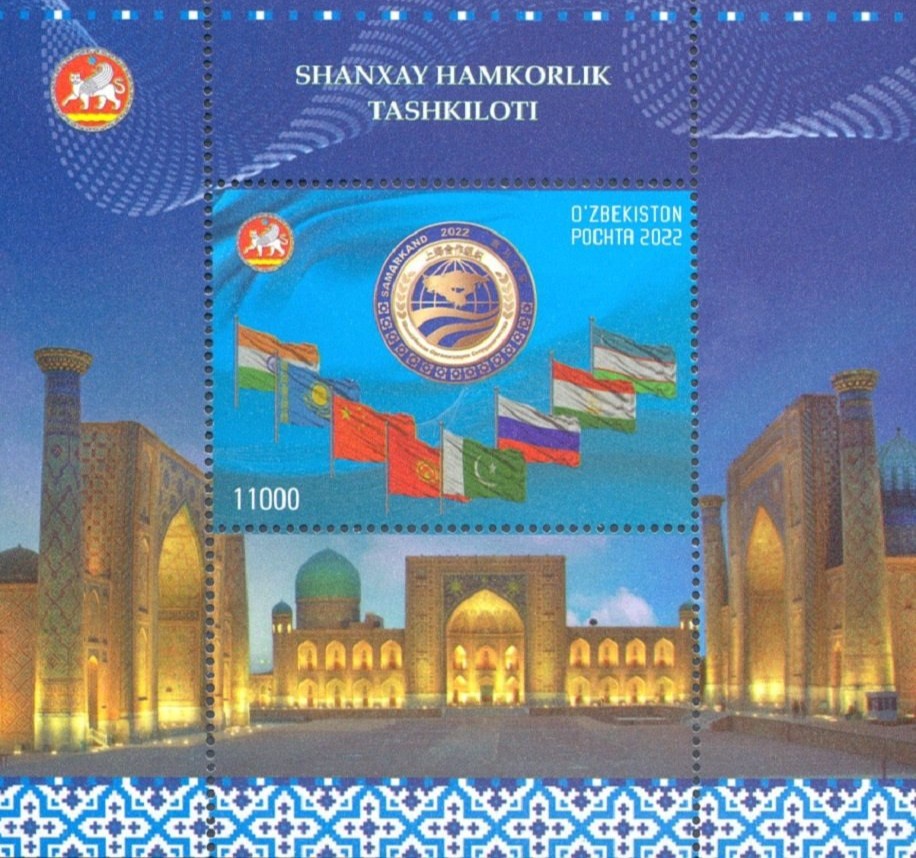 Pochta markasida Shanxay hamkorlik tashkilotiga a'zo bo'lgan davlatlarining bayroqlari, sammit logotipi hamda Samarqand shahrining gerbi tasvirlangan. Markaning orqa fonida esa Registon maydoni joylashgan.