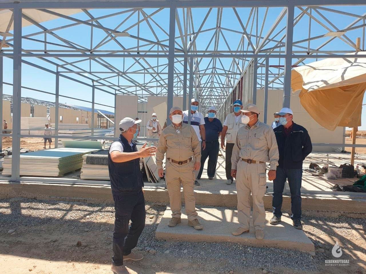 “Ishchilar shaharchasi” jami 607 oʻringa moʻljallangan boʻlib, shundan 400 oʻrinli 48 ta xonadon, 117 oʻrinli bitta yotoqxona, 60 oʻrinli mehmonxona, 30 oʻrinli 2 ta kottej qurib bitkazildi va foydalanishga topshirildi. Qolgan ishchi-xodimlarning vaxta rejimida ishlash borasidagi xohish va takliflari inobatga olinib, qoʻshimcha 300 oʻrinli yengil konstruksiyali yotoqxonalar qurilishi boshlandi.