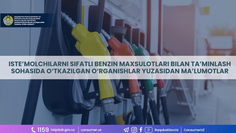 Raqobatni rivojlantirish va isteʼmolchilar huquqlarini himoya qilish qoʻmitasi tomonidan “Oʻzenergoinspeksiya” bilan hamkorlikda aholini sifatli benzin mahsulotlarini bilan taʼminlash holatini oʻrganish maqsadida bir qator tadbirlar amalga oshirilmoqda.