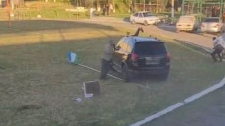 Internetdagi videoda mashina futbol maydoni ichidagi bir guruh odamlar qarshisida xavfli burilishlar qilib, ularni qasddan bosib ketishga harakat qilgani va bir nafarini urib ketgani koʻrinadi.