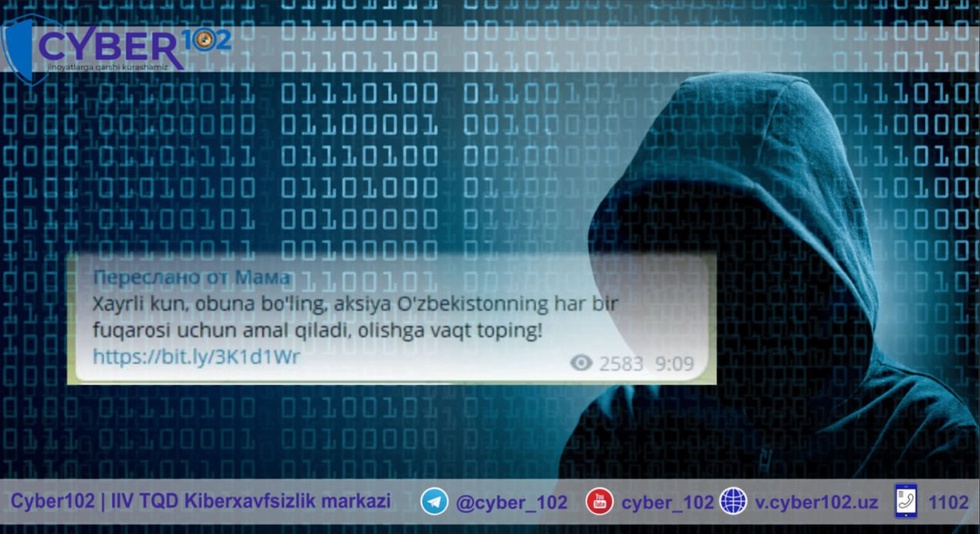 Maʼlumotlarga koʻra, firibgar internet foydalanuvchilariga Telegram messenjeri orqali turli xil mazmundagi xabarlar (havola) joʻnatib, ularni qiziqtirib, bank karta maʼlumotlarini qoʻlga kiritish orqali bank kartalarida saqlangan pullarni oʻgʻirlab, qingʻir yoʻllar bilan boylik orttirib kelayotganligi maʼlum boʻldi.