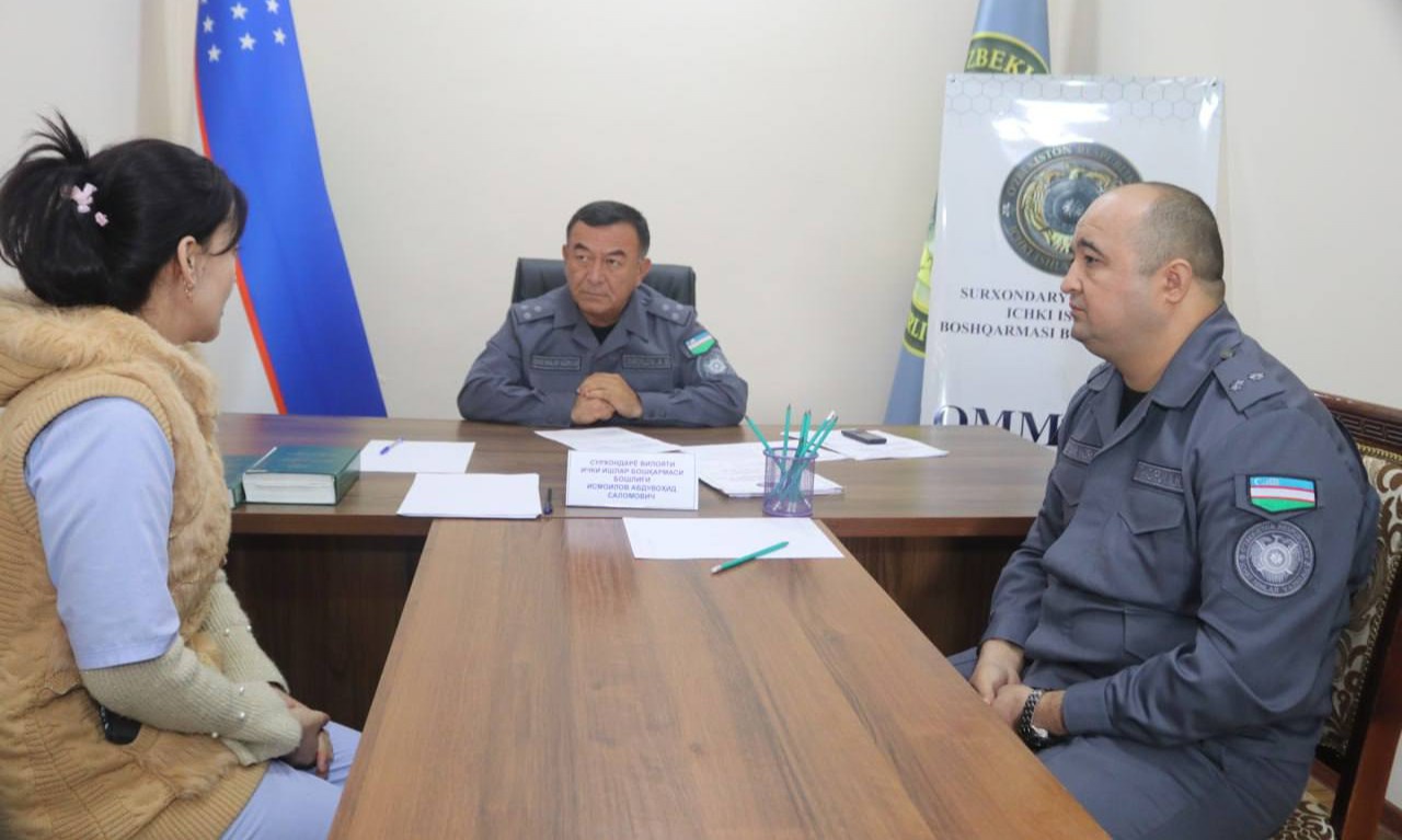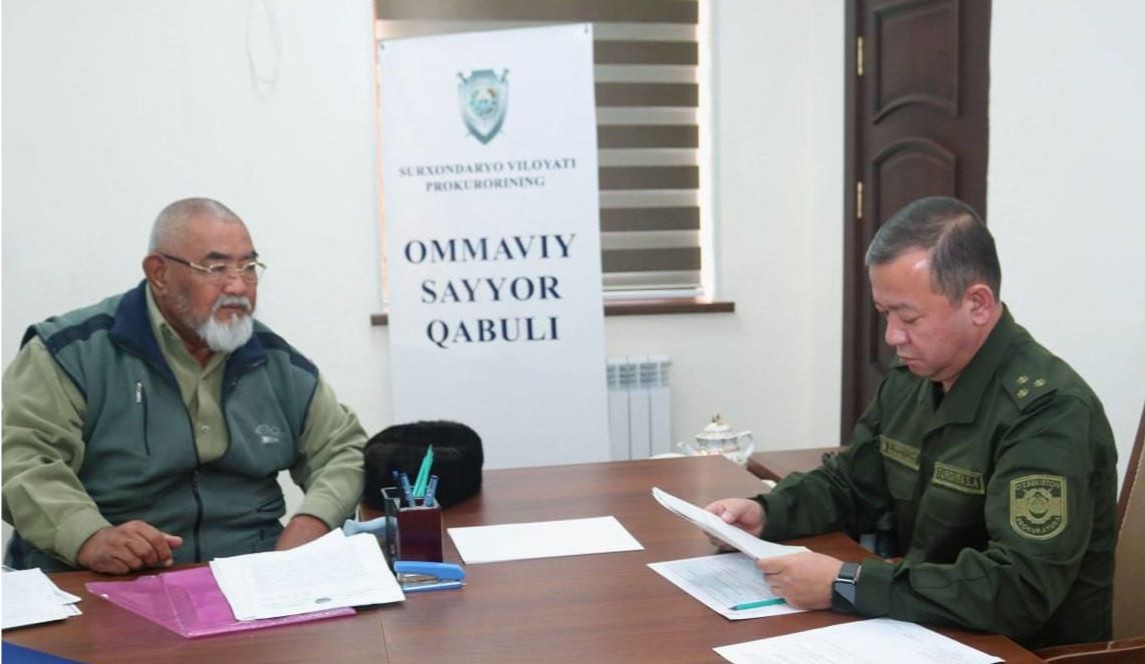 Davlatimiz rahbari topshirigʻi asosida Prezident Xalq qabulxonalari Termiz shahri, Denov va Sherobod tumanlarida sud-huquq masalalari boʻyicha tashkil qilgan ommaviy qabullarda viloyat prokuraturasi, sudlari, soliq, ichki ishlar, adliya va bojxona boshqarmalari masʼullari har bir masalani murojaatchilar ishtirokida sinchiklab koʻrib chiqdi.