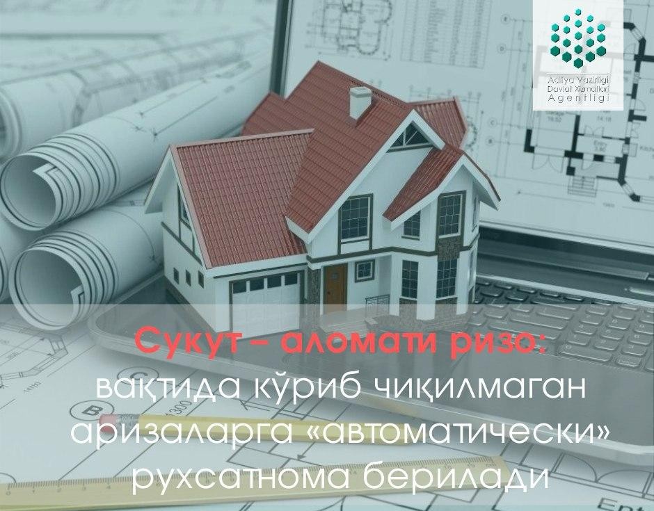 - qurilishga ruxsat beruvchi hujjatlarni rasmiylashtirishda vakolatli organlar tomonidan belgilangan muddatlarda ruxsatnomalarni rasmiylashtirmasa “Sukut – alomati rizo” tamoyiliga koʻra tizimda avtomatik tarzda ruxsatnoma shakllanib ariza beruvchiga yuborilishi rejalashtirilgan.