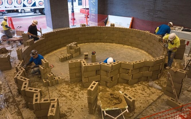 Unda ishlatilgan g'ishtlar CO2 chiqindilarini kamaytirish uchun suv o'tlaridan ishlab chiqilgan.