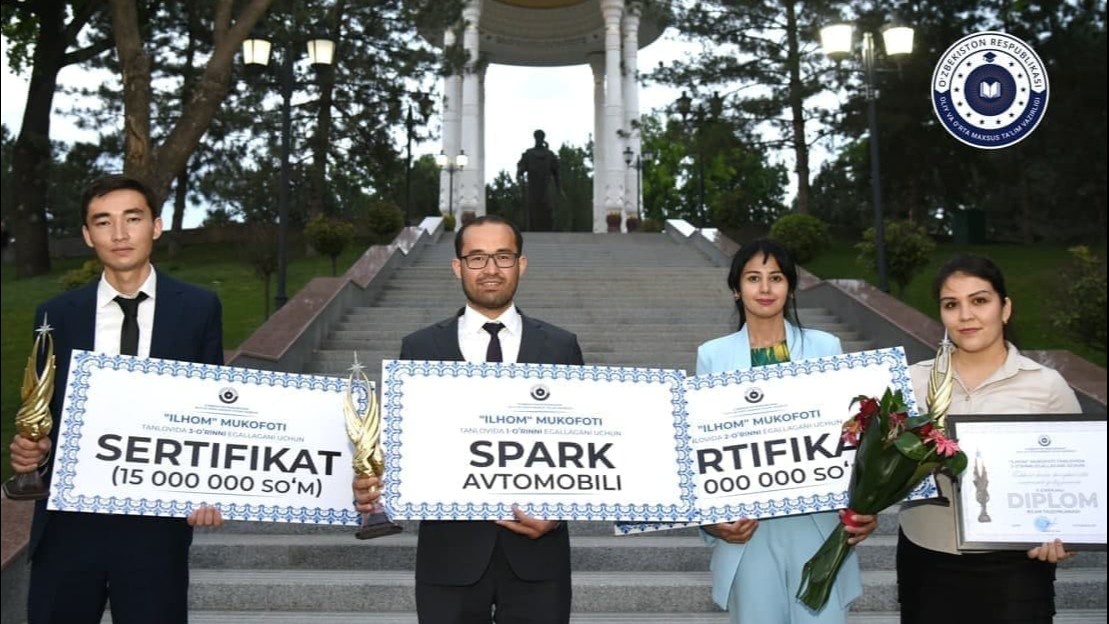 1-oʻringa Toshkent davlat oʻzbek tili va adabiyoti universiteti 2-bosqich magistranti Akrom Malikov munosib topildi. U “Spark” avtomobili bilan taqdirlandi.