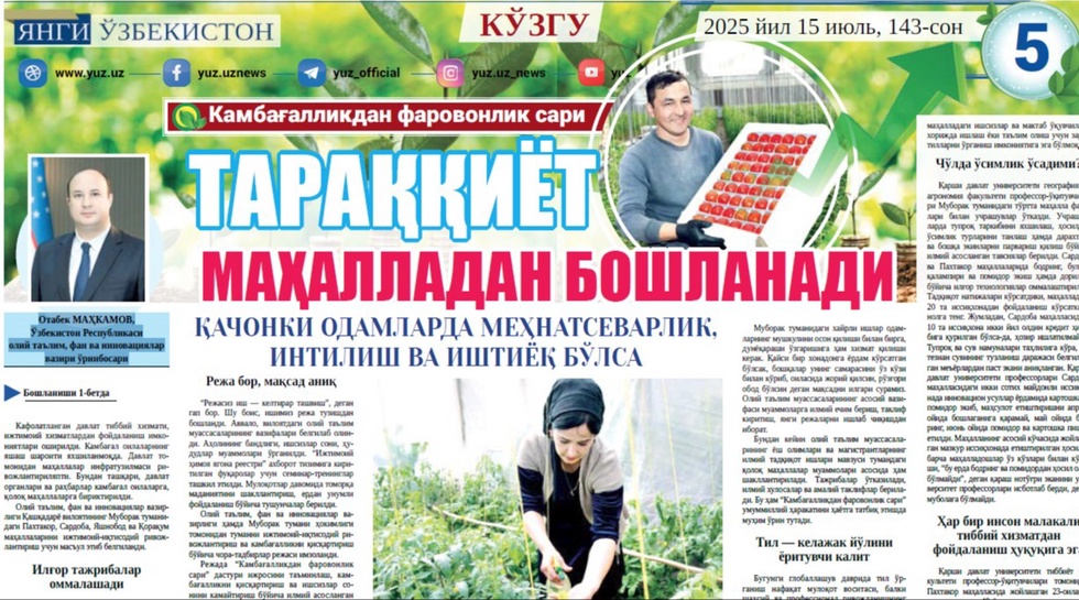 Bu haqda koʻp va xoʻb gapirilayotgani bejiz emas. Oʻtgan yillar davomida bu borada bir qancha meʼyoriy hujjatlar qabul qilindi, ilgʻor tajribalar ommalashtirildi. Kimki nimani taklif qilayotgan boʻlsa, avvalo, xalqni oʻylayapti, yurtning ertasi uchun qaygʻuryapti.