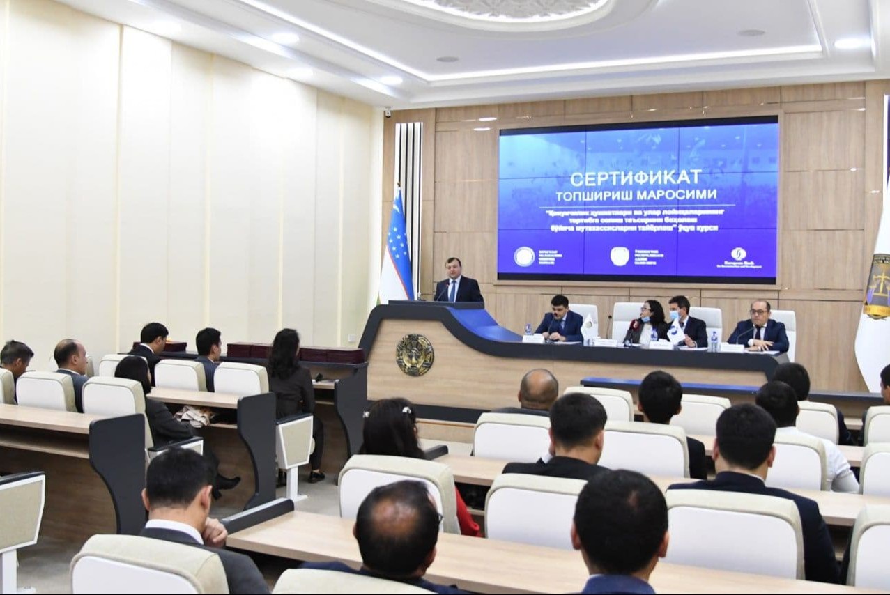 Shu munosabat bilan, joriy yilning 28-oktyabr kuni oʻquv kurslarini muvaffaqiyalti tamomlagan tinglovchilarga sertifikatlar Yevropa tiklanish va taraqqiyot bankining Oʻzbekistondagi vakolatxonasi rahbari A.Drakinos hamda Oʻzbekiston Respublikasi adliya vaziri oʻrinbosari A.Karimov tomonidan tantanali ravishda topshirildi.