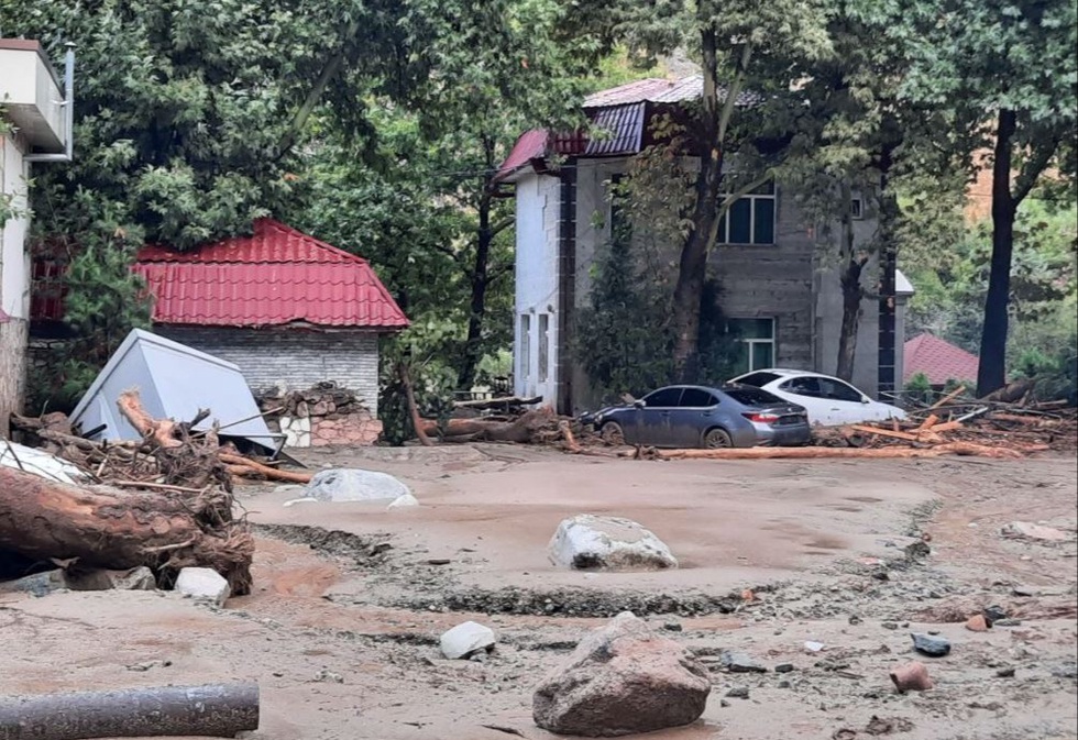 Qutqaruvchilar tabiiy ofatdan zarar ko'rgan hududlarda ishlamoqda.