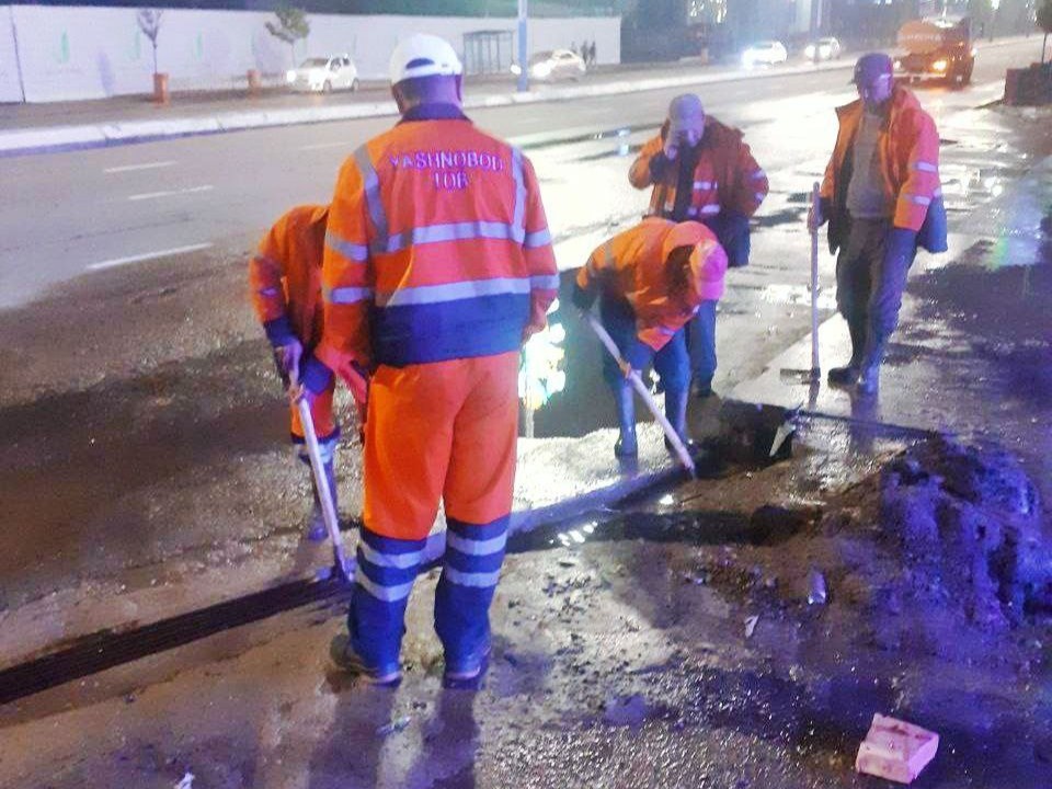 Bu holatni tezkorlik bilan bartaraf etish maqsadida, Toshkent shahar Obodonlashtirish bosh boshqarmasi va uning tuman boshqarmalari, kommunal soha tizimlari, Favqulodda vaziyatlar boshqarmasi hamda Ichki ishlar bosh boshqarmasining 500 dan ortiq xodimlari va 100 dan ortiq maxsus texnikalari jalb etilib, 23:00 gacha barcha manzillardagi holatlar bartaraf etildi.