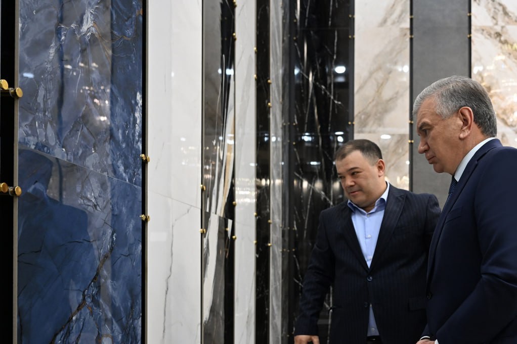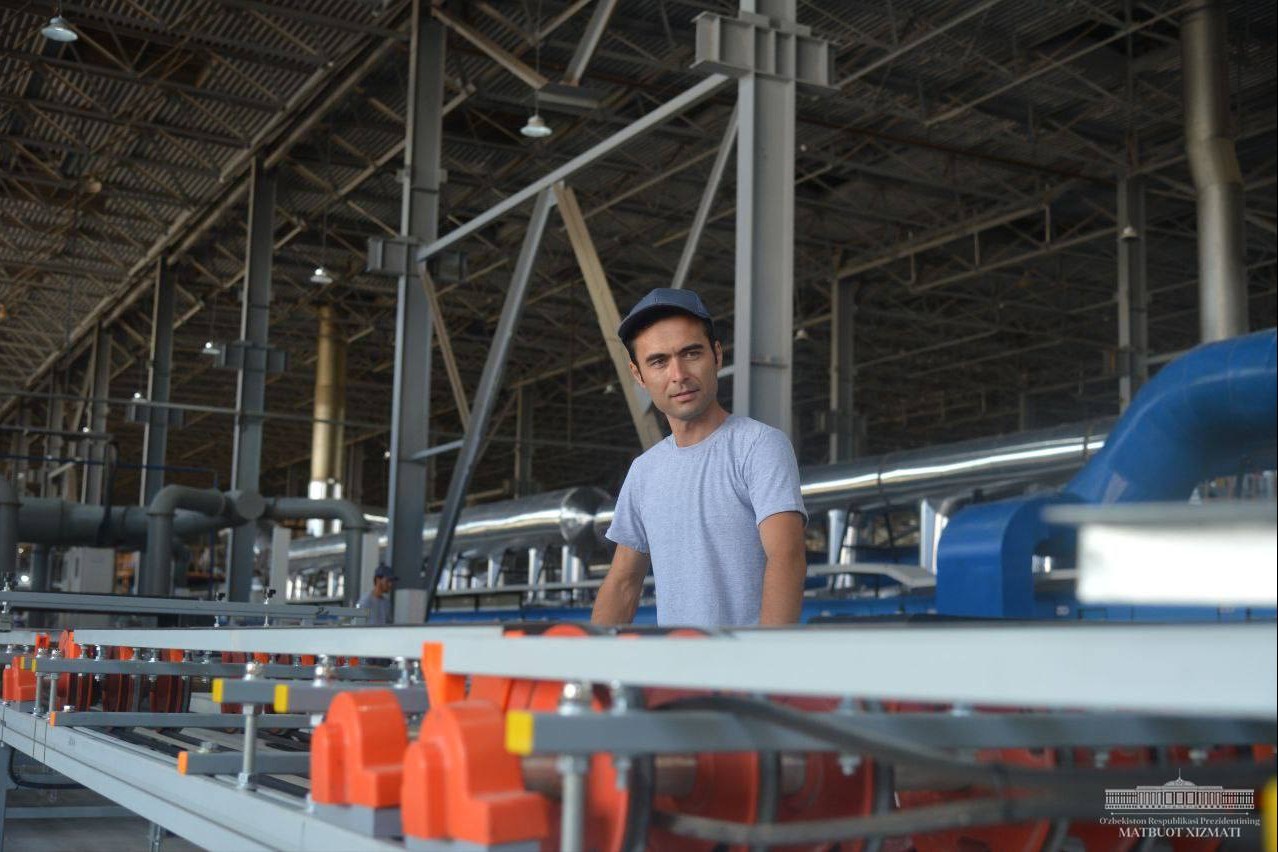 Prezident Shavkat Mirziyoyev uning ish jarayoni bilan tanishib, mahsulotlar sifatini ko‘zdan kechirdi.