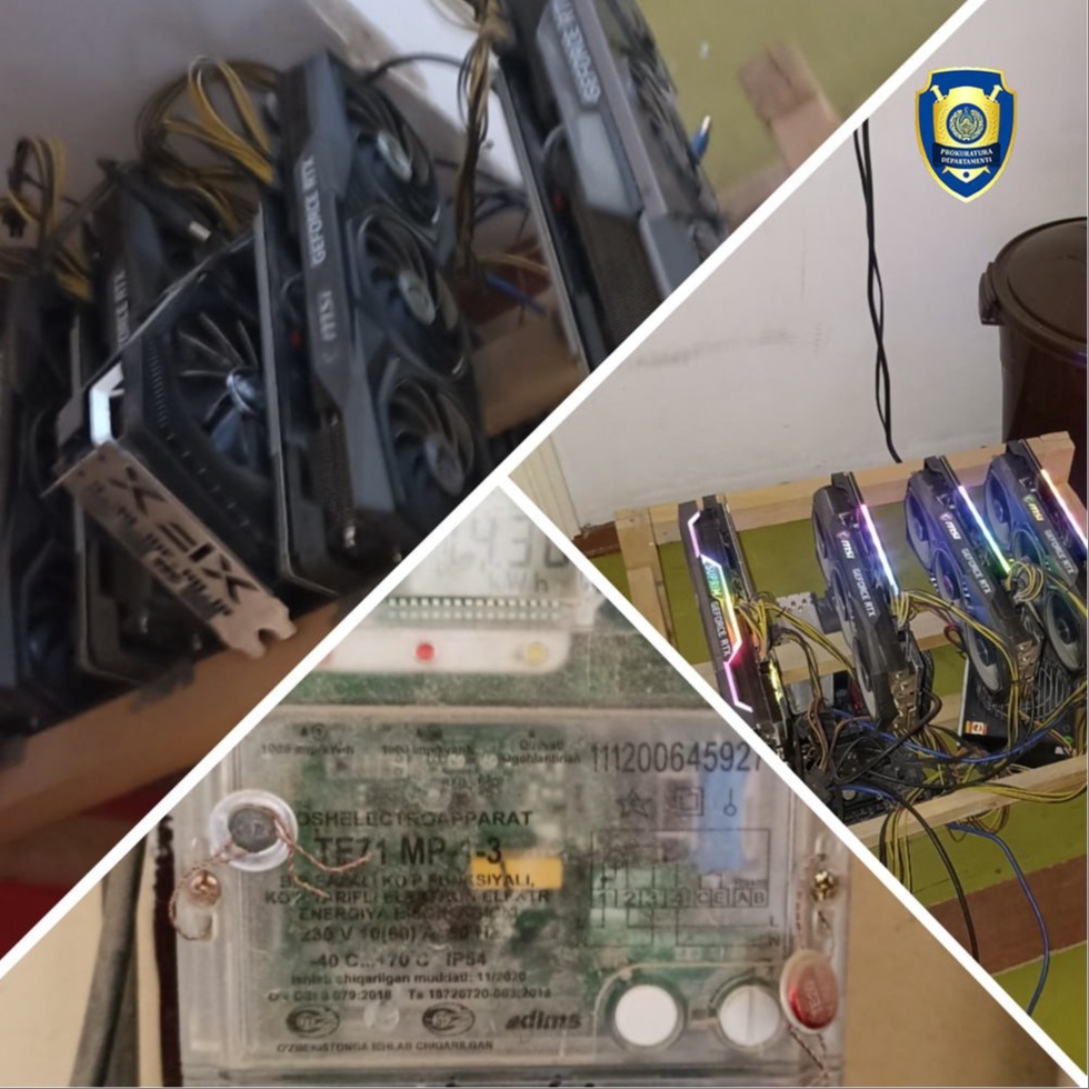 Bosh prokuratura huzuridagi Departamentning Yuqorichirchiq tumani boʻlimi tomonidan oʻtkazilgan tergovga qadar tekshiruvda fuqaro K.A. “Navroʻz” MFY hududidagi xonadonida qonunga xilof ravishda telekommunikatsiya tarmoqlaridan foydalangan holda kripto-aktivlar aylanmasi sohasidagi mayning faoliyati bilan shugʻullanib kelib, jami 139,9 mln soʻmlik elektr energiyasidan noqonuniy foydalanganligi aniqlandi.