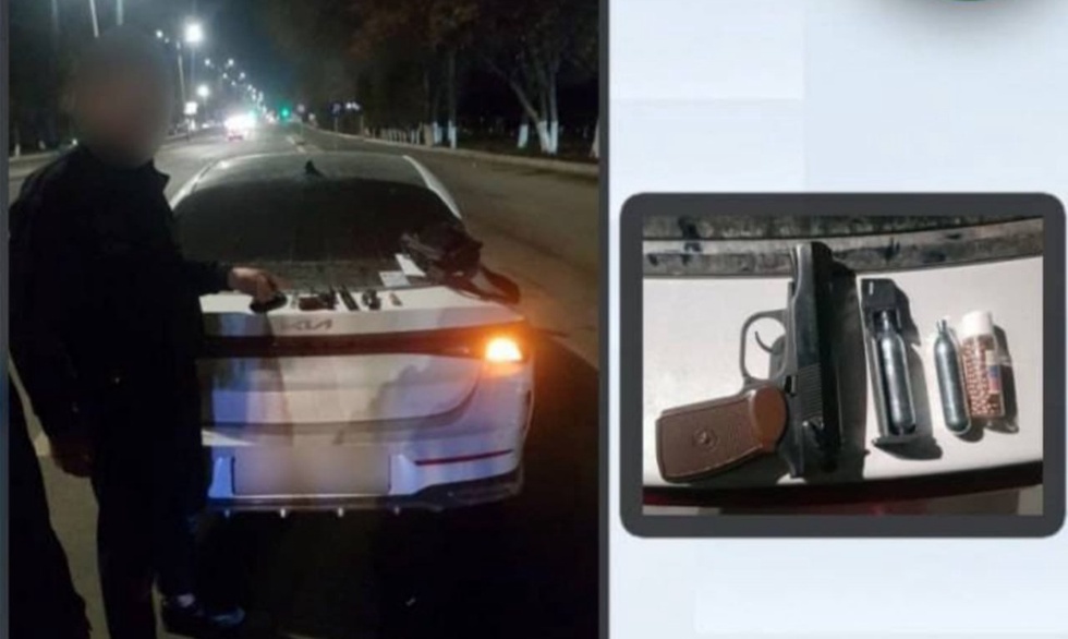 Xolislar ishtirokida haydovchi koʼzdan kechirilganda, qoʼl sumkasi ichidan pnevmatik qurol topilgan.