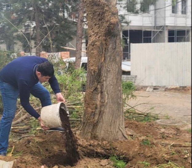 Safora daraxti tegishli soha mutaxassislari hamda tuman ekologiya boʻlimi masʼullari tomonidan agrotexnik qoidalarga asoslangan holda ishlov berilib, biologik oʻgʻitlar bilan toʻyintirilgan tuproq qoplamasi yotqizilgan holda oʻz oʻrniga qayta ekildi.