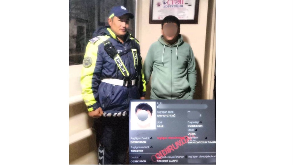 Qayd etilishicha, Toshkent shahar, Uchtepa tumanida xizmat olib borayotgan Toshkent shahar IIBB YHXB YPXB 4-batalon YPX inspektori serjant B.Jumagulov tomonidan Koʻkcha Darvoza koʻchasida “Matiz” rusumli transport vositasi toʻxtatilib, haydovchining hujjatlarini tekshirilganda yoʻlovchi 1991-yilda tugʻilgan A.D.ning oʻzini tutishi xodimlarda shubha uygʻotgan yoʻlovchining maʼlumotlari planshet moslamasi yordamida, maxsus dastur orqali tekshirilganda, Oʻzbekiston Respublikasi Jinoyat Kodeksining 168-moddasi 3-qismida nazarda tutilgan jinoyatni sodir etganlikda gumonlanib rasmiy qidiruvdaligi maʼlum boʻlgan.