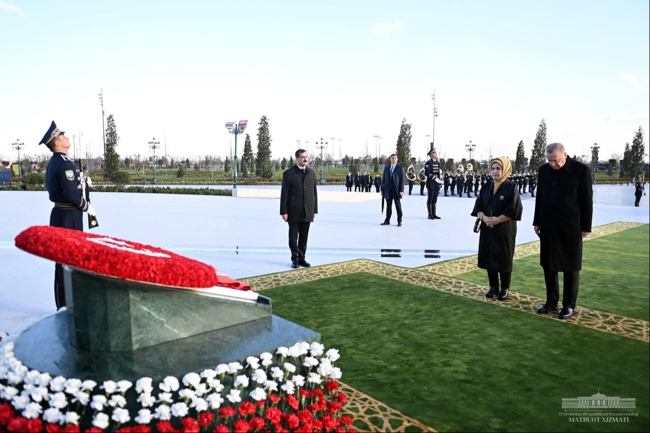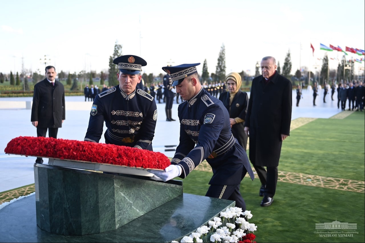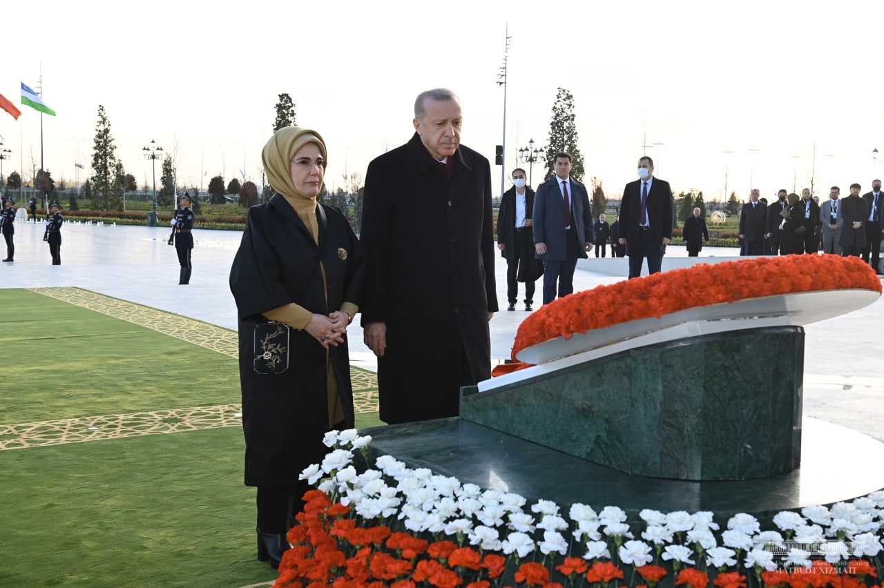 Turkiya yetakchisi davlatimiz rahbari hamrohligida “Yangi O‘zbekiston” bog‘iga tashrif buyurib, Mustaqillik monumenti poyiga gul qo‘ydi. Mehmonga majmuada aks ettirilgan tarix va mazmun haqida so‘zlab berildi.