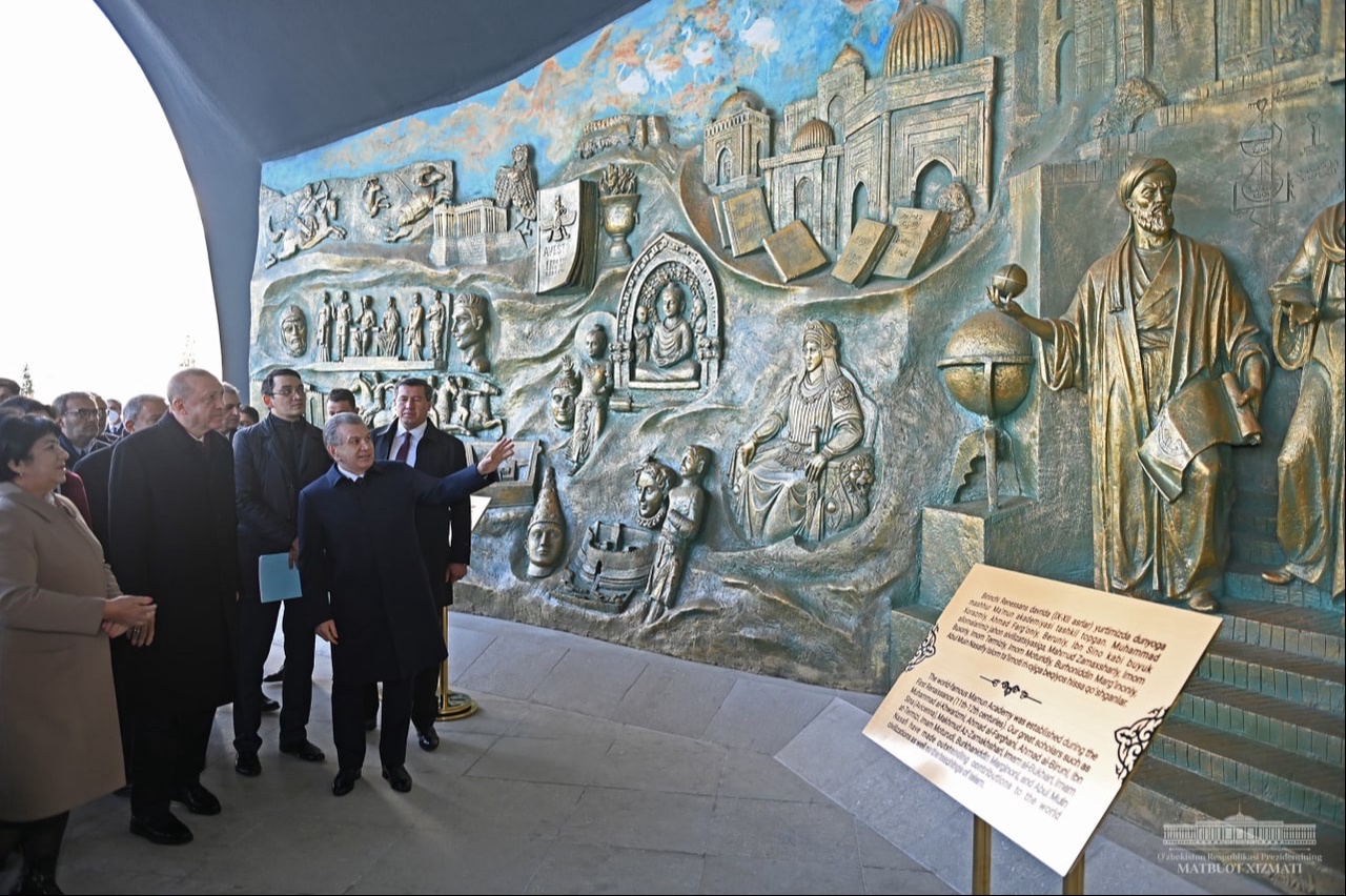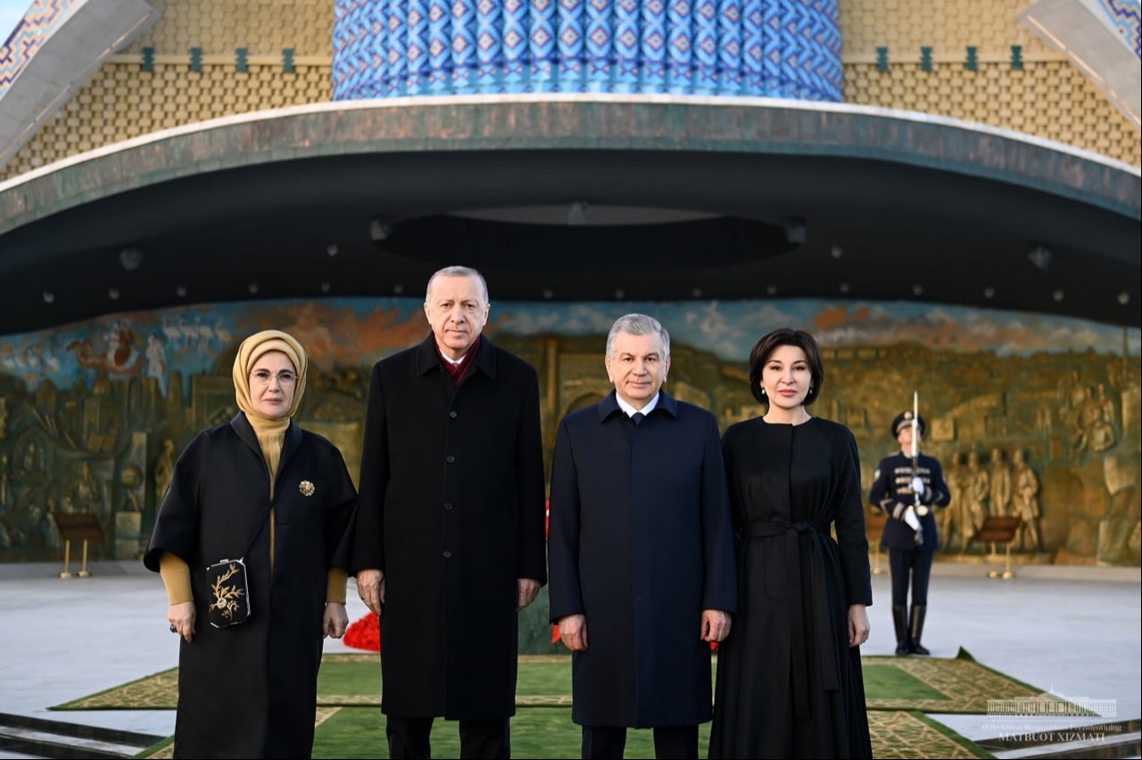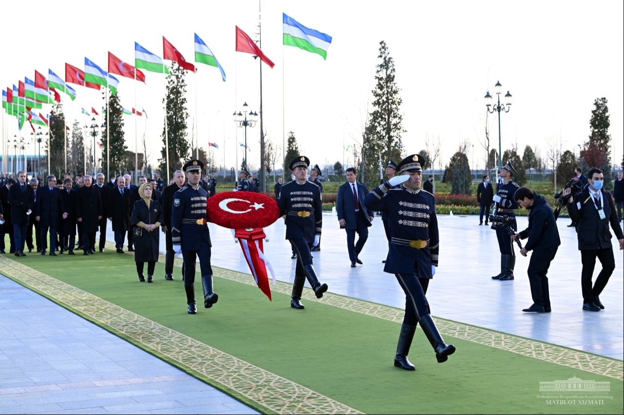 Turkiya yetakchisi davlatimiz rahbari hamrohligida “Yangi O‘zbekiston” bog‘iga tashrif buyurib, Mustaqillik monumenti poyiga gul qo‘ydi. Mehmonga majmuada aks ettirilgan tarix va mazmun haqida so‘zlab berildi.