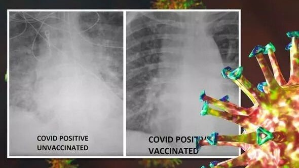 AQSHning Missuri shtatidagi Sent-Luis universiteti qoshidagi shifoxona boʻlimi boshligʻi doktor Gassan Kamelning izohlashicha, rentgent tasvirida sogʻlom oʻpkada toʻqimalar hamda suyaklar oraligʻi toʻq rangda aks etishi oʻpka kislorod bilan toʻliq taʼminlanganini, yaxshi ishlayotganidan dalolat beradi. COVID-19ga qarshi vaksina olmagan bemorlar oʻpkasining rentgent tasvirida oq rang koʻproq namoyon boʻladi. Shifokorning aytishicha, bu oʻpkada muammo borligini, kislorod yetishmovchiligini tasdiqlaydi.