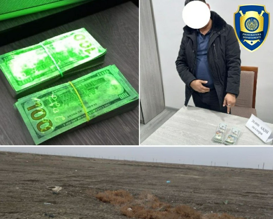 Bosh prokuratura huzuridagi Departament hamda IIVning Buxoro viloyati boshqarmalari tomonidan oʻtkazilgan tezkor tadbirda, fuqaro E.X. 2018-yilda ishlab chiqarish sexi qurish uchun sotish huquqisiz ajratilgan yer maydonining 50 sotixini fuqaro N.N.ga firibgarlik yoʻli bilan 75 000 AQSH dollariga sotishga kelishib, keyinchalik hujjatlarini rasmiylashtirib berishini aytib, oldindan 20 000 AQSH dollarini olgan vaqtida ashyoviy dalillar bilan ushlangan.