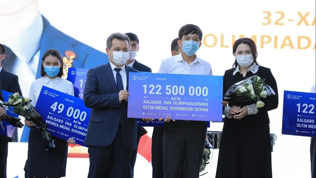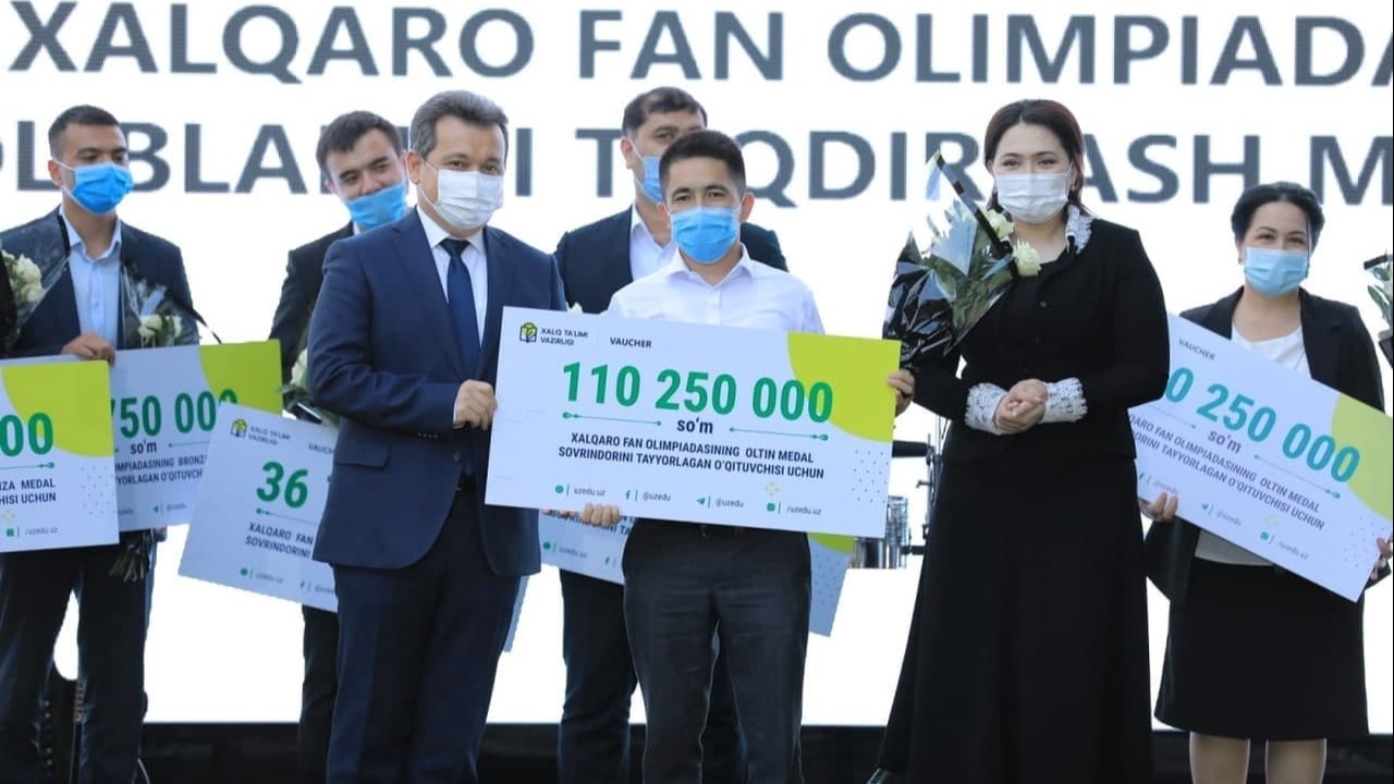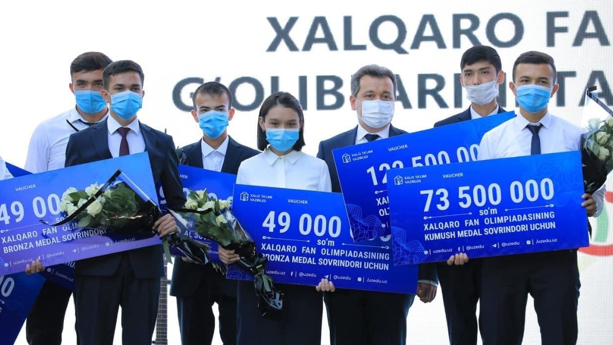 1-oʻrin (oltin medal) uchun – oʻquvchiga bazaviy hisoblash miqdorining 500 baravar (122,5 mln. soʻm), oʻqituvchisiga – 450 baravar (110,25 mln. soʻm);