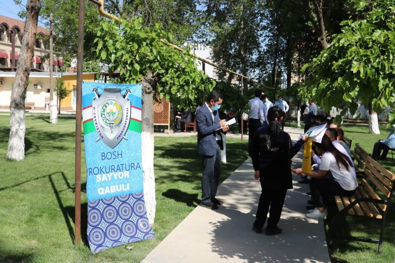 Prezidentimizning shunday oliy maqsad yo'lidagi tegishli topshiriqlari asosida Prezident maslahatchisining birinchi o'rinbosari Baxtiyor Islamov, Bosh prokuror o'rinbosari-O'zbekiston Respublikasi Harbiy prokurori general-mayor SHuxrat Uzakov hamda vazirlik va davlat idoralari rahbar xodimlarining sud-huquq masalalari bo'yicha navbatdagi ommaviy sayyor qabullari karantin qoidalariga rioya qilgan holda Toshkent shahrida boshlandi.