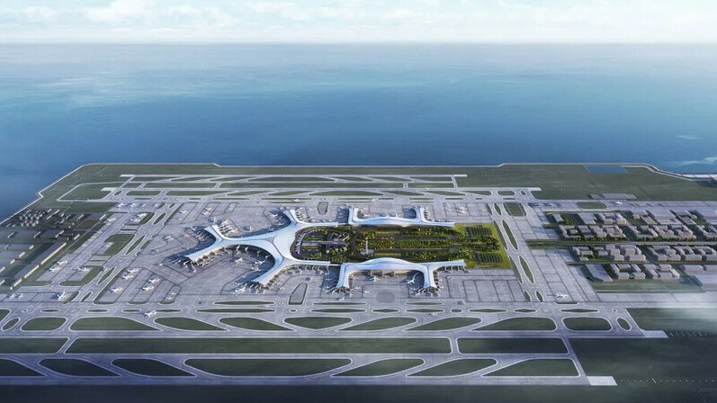 Yangi Szinchjouvan xalqaro aeroportining maydoni 20 kvadrat kvadrat kilometrni tashkil etadi. Havo bandargohi dastlab yiliga 43 million yo'lovchiga xizmat ko'rsatishi, kelajakda esa 80 million kishini qabul qilishi rejalashtirilgan. Hududining kattiligi bo'yicha u Gonkong xalqaro aeroportidan (12,48 kvadrat kilometr) va Yaponiyaning Kansay xalqaro aeroportidan (10,5 kvadrat kilometr) o'tib ketadi. Ushbu ikkita havo bandargohi ham sun'iy orollarda joylashgan.