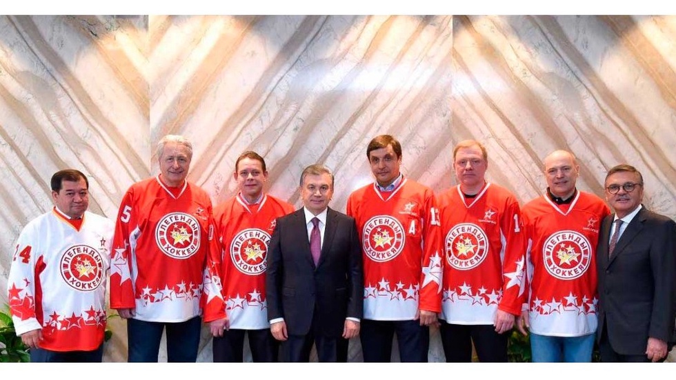 Suratda: O‘zbekiston Respublikasi Prezidentining xokkey afsonalari bilan uchrashuvi. 2019-yil, 15-mart.