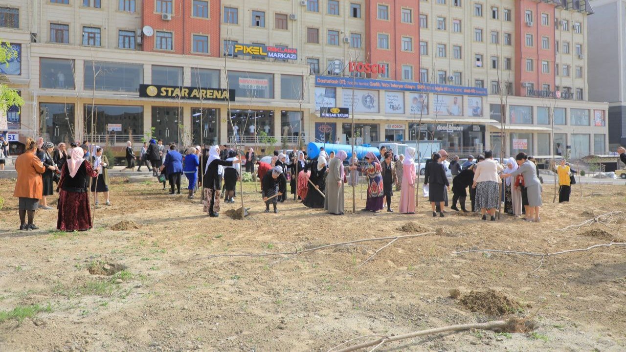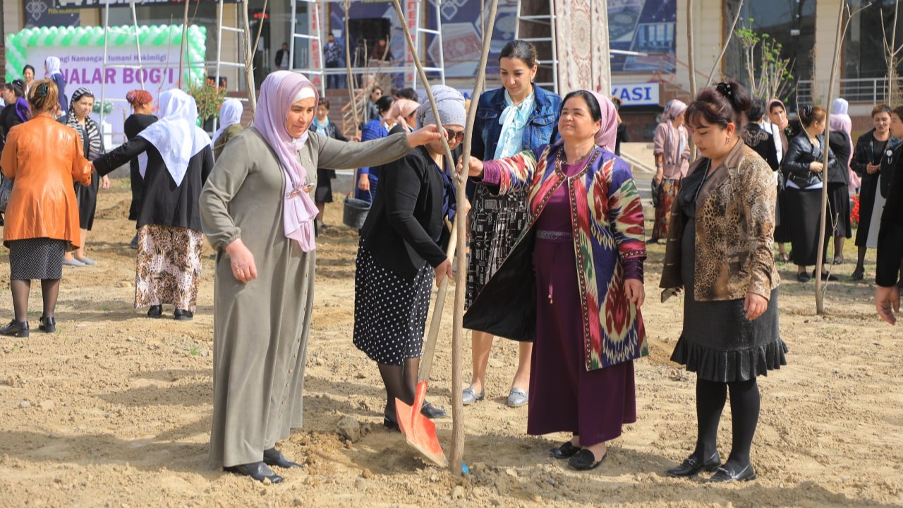 Yangi bogʻda koʻchat ekish ishlarida viloyati hokimi oʻrinbosari – oila va xotin-qizlar boshqarmasi boshligʻi Dinora Yakubova va tumandan faol xotin-qizlar, mahalliy hokimlik mutasaddilari, nuroniylar va yoshlar, koʻngilli aholi vakillari qatnashdi. Ular ajratilgan maydonga birinchi kunning oʻzida 600 tup katalpa, kashtan va pavloniya koʻchalarini qadadilar. Bundan tashqari, 3 mingta gul koʻchatlari ekildi.