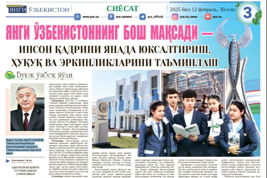 2023-yil 30-aprel kuni oʻtkazilgan referendumda mohiyat-mazmuniga koʻra har tomonlama pishiq-puxta oʻylangan va umumeʼtirof etilgan xalqaro demokratik standartlar talablariga javob beradigan Bosh qonunimizning yangilanishi nafaqat jamiyatimiz hayotidagi noyob siyosiy, ijtimoiy-huquqiy voqea, balki ulkan olamshumul hodisa boʻldi. Yangilangan Konstitutsiyada mamlakatimizda davlat boshqaruvi tizimini yanada demokratlashtirish yoʻliga asos solindi. Davlat va uning organlari ijtimoiy roli va majburiyatlari kengaytirildi, inson huquq va erkinliklarini samarali muhofaza qilish mexanizmlari yanada mustahkamlandi.