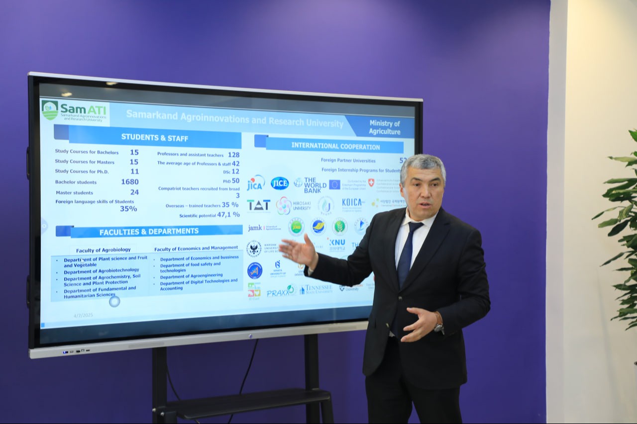 Hozirda institut Tokio qishloq xoʻjaligi va texnologiyalar universiteti hamda “Yaponiya — Oʻzbekiston” Assotsiatsiyasi bilan hamkorlikda “Samarqandda quritilgan xurmodan foydalangan holda qishloq aholisi daromadlarini oshirish” nomli xalqaro loyihani amalga oshirmoqda. Delegatsiya vakillari ushbu loyihaning dastlabki natijalari bilan tanishar ekan, Oʻzbekistonda eksportbop mahsulotlar ishlab chiqarish va aholining daromadlarini oshirish boʻyicha katta imkoniyatlar mavjudligini eʼtirof etdi.