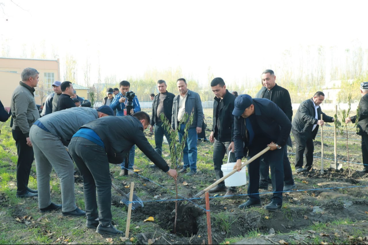Tadbir ishtirokchilari ezgu niyat bilan maktab hududida 250 tup mevali daraxt ko'chatlarini ekishdi.