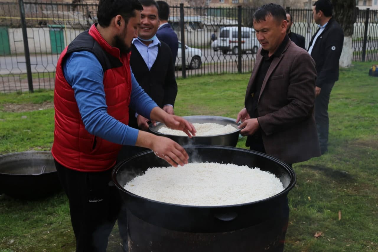 MFYda tashkil etilgan universitet yoshlar bog'ining ochilish marosimida esa katta doshqozonda osh damlanib, hududning kam ta'minlangan, nogironligi bo'lgan, boquvchisini yo'qotgan oilalariga beg'araz tarqatildi.