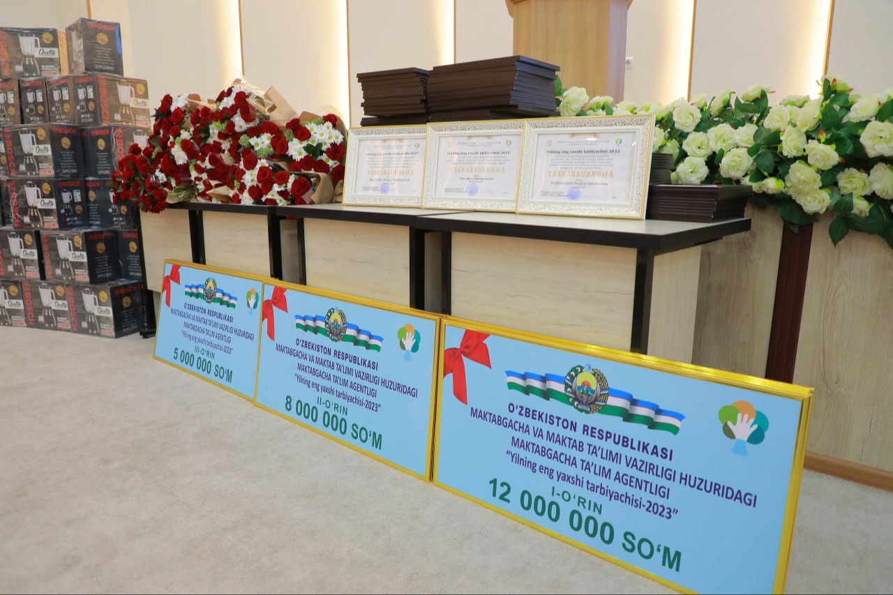 Shuningdek, “Eng yaxshi ijodkor-ixtirochi tarbiyachi”, “Innovatsion va axborot texnologiyalarini qo'llaydigan eng yaxshi tarbiyachi”, “Eng yaxshi eko-targ'ibotchi tarbiyachi”, “Eng yaxshi ma'naviy kamolotga etaklovchi tarbiyachi” nominatsiyalarida g'oliblikni qo'lga kiritgan ishtirokchilarga davlat granti asosida oliy ta'lim muassasalarida tahsil olish uchun yo'llanma berildi.