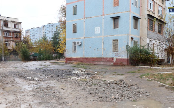 Koʻp qavatli uylarga boshlovchi ikkita ichki yoʻl hozircha taʼmirga muhtoj.
