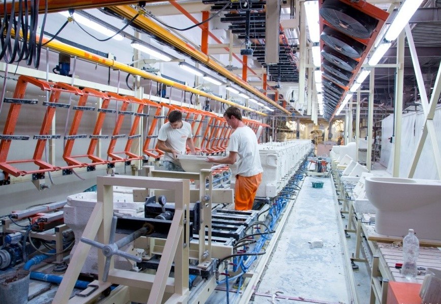 Santexnika jihozlarini ishlab chiqarish murakkab va nozik jarayondir. Buning uchun oʻndan ortiq turdagi xom ashyolardan foydalaniladi. Loy 1 ming 200 haroratda pishirilib, toʻliq tayyor mahsulot holda tayyorlanadi.