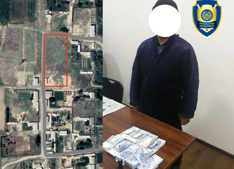 Bosh prokuratura huzuridagi Departamentning Jizzax viloyat boshqarmasi tomonidan IIB xodimlari bilan hamkorlikda oʻtkazilgan tezkor tadbirda, fuqaro L.A. fuqaro G.M.ga Zarbdor tumani, “Lalmikor” MFY hududidan oʻzining yashash uyining toʻgʻrisida oʻzboshimchalik bilan egallab olgan 20 sotix zaxiradagi yer maydonini 80 mln soʻmga sotishini aytib, oldindan 10 mln soʻmni firibgarlik yoʻli bilan olgan vaqtida ashyoviy dalillar bilan ushlangan.